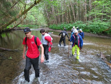 One of the motivators behind statehood was the state taking control of fisheries and fish traps were immediately abolished in 1959. Scaling a small face aside the waterfall we looked down onto a fish ladder built in the 1930’s to help enhance the fish population. Further up the trail, along the edge of the stream, we found the impressive abode of Castor canadensis, North America’s largest rodent. A valuable commodity the search for beaver was the result of much of the early exploration of North America as their pelts were the single most valuable commodity through the early 1800's. Close to the lodge we also spotted bear tracks and a bear scratching tree with bear hair glued to the sap. Up at beautiful Pavlof Lake a wood frog was caught and we learned their strategy of surviving the winter is to freeze solid.