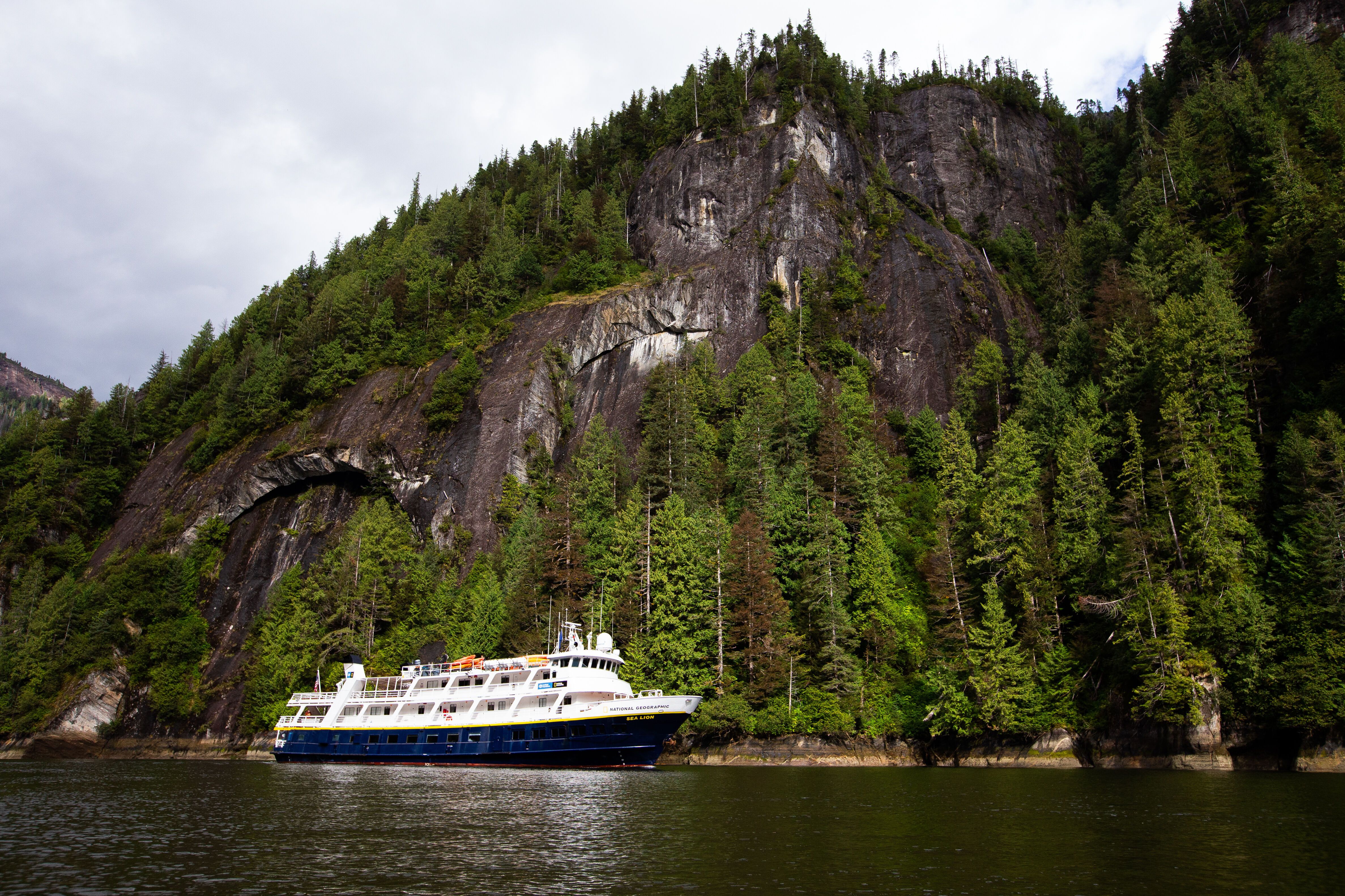 Many of our guests book their trip for one reason – they want to see a brown bear roaming free in wild Alaska. This morning, they got their wish! We dropped anchor in Pavlov Harbor located on the northeast coast of Chichagof Island. The area hosts a productive salmon stream, and the bears were there to feed! We staggered our guests to keep the groups to a manageable size and headed for the landing. Bears were seen even before we landed, and as we approached the stream we saw two large sub-adult female brown bears near the water. Closer to the small cascading waterfall, a mother bear was teaching her two cubs to fish while gorging herself on the abundant salmon. One more sat close to the waterfall, seemingly satiated on the feast provided by the returning salmon.