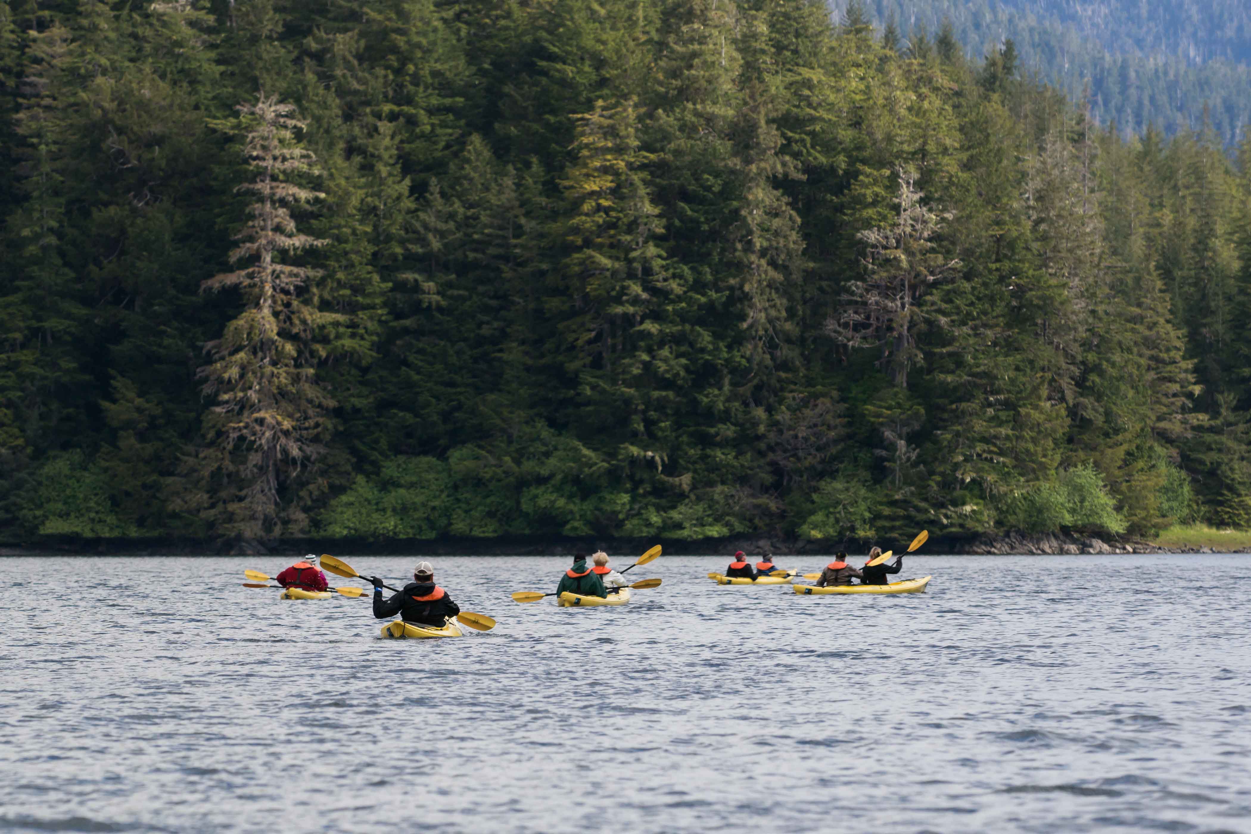 For the morning we visited a rarely explored area of Peril Strait called Krestof Sound and inside of that, De Groff Bay. As best as we can recall this ship had only visited here once before and that was to skirt some unfavorable weather conditions, however it was that visit that intrigued our expedition leader to return someday and see more of this incredibly scenic area. This long and convoluted body of water packed with tiny islands is a perfect place to explore by kayak and our inflatable boats, so that is exactly what we did. The kayaks departed “Henry” Beach about one-third of the way down the fjord and set off for the near two-mile paddle into the back of De Groff Bay where they were able to explore the entire bay for the morning, and some of our compliment of guests set out in our expedition landing craft to cruise the shoreline.