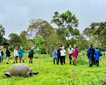 While the modern fishing vessels were thrilling to see in action, there is a long history of fishing in this area by the Tlingit, dating back 2,000 years before Petersburg’s founding. Those of us on the bike ride admired one of the historic Tlingit fishing grounds at Sandy Beach. Taking advantage of the changing tides, the Tlingit would line rocks in a V formation, leaving an opening at the point. When the tide was high, fish would enter, and when the tide fell, they would block the entrance and harvest the fish inside.