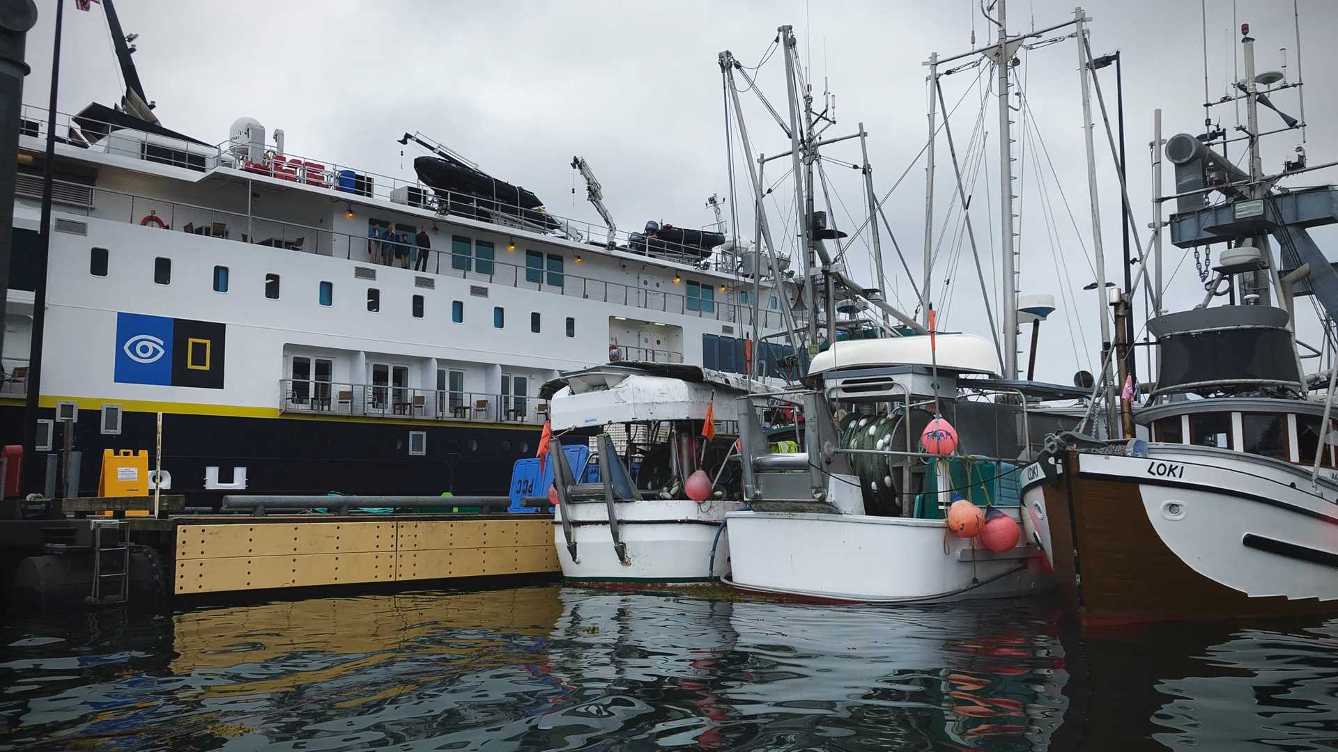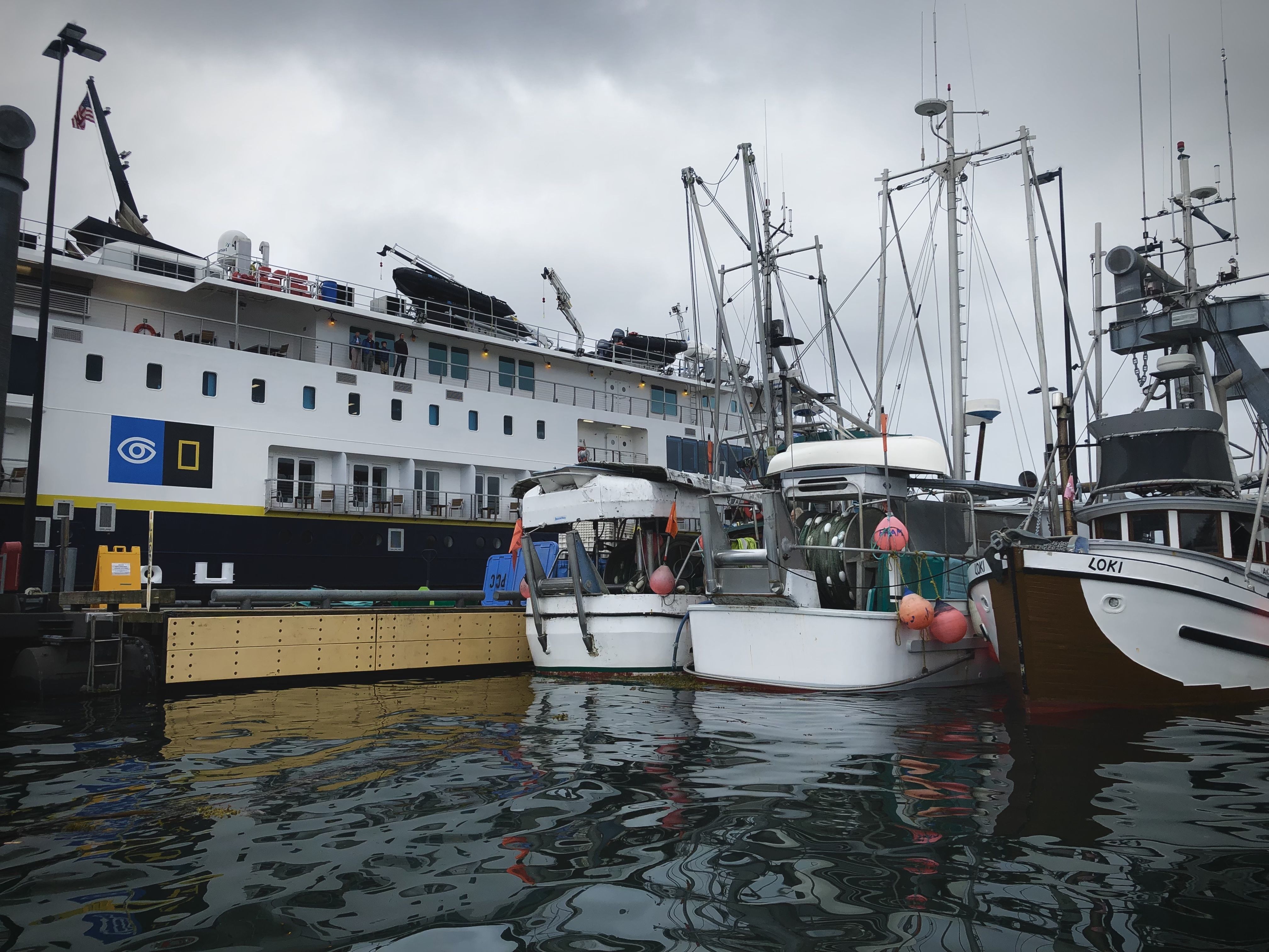 As we cruised the harbor by Zodiac, we saw the fleet in action. Purse seiners and gill-netters alike docked alongside us, organizing their catch of pink salmon from the morning. Stellar sea lions and bald eagles scrounged for scraps tossed aside.