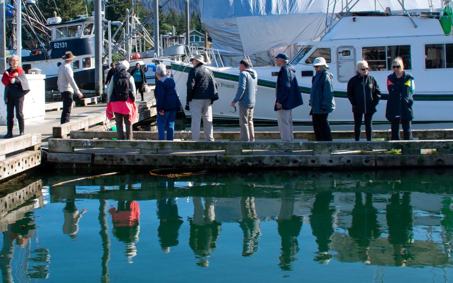 In addition to hiking, many chose to take part in a guided walk around the fishing boat docks of Petersburg, learning about the different types of fishing methods used locally while immersed in a working fishing town. While on the walk around the docks, we were able to look directly below our feet and observe the marine life that has attached itself to the wooden pilings and piers themselves. By the end of the day, the sun was out, spirits were high and we had all explored and seen new things. We finished the day with a fresh Dungeness crab feast and a sunset that filled the sky with bursting orange and red. Humpback whales joined us off the bow to watch the evening end. It’s hard to imagine a more outstanding day of expedition in Southeast Alaska.