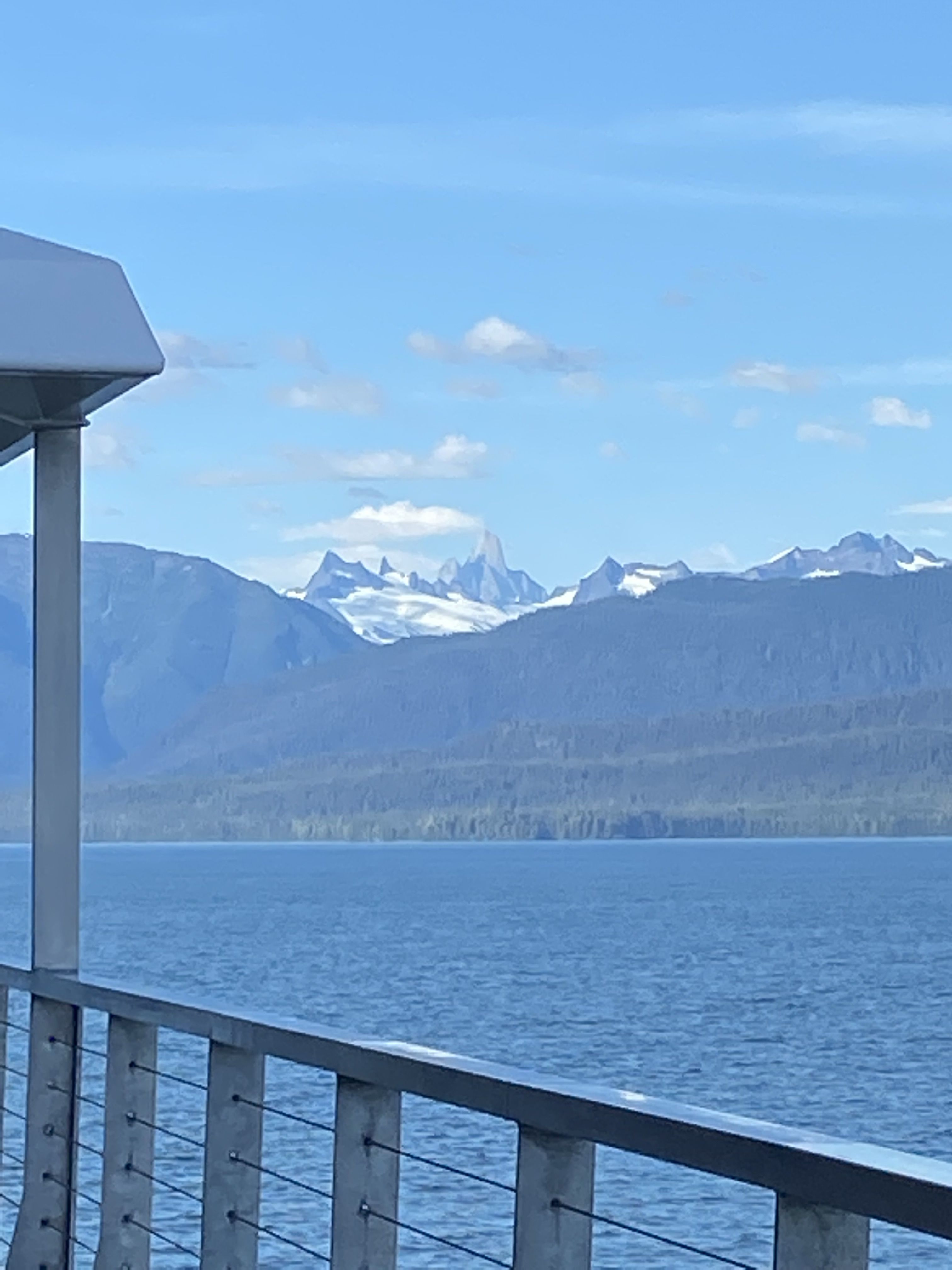Some guests chose to cruise the docks by Zodiac, learning about the local fishing fleet along the way, while others motored to Kupreanof Island to hike a boardwalk trail to a muskeg bog to view this exotic environment. Bicycles were available for those that wished to explore the local town on Mitkof Island. As we spent the entire day in port, people also had time to relax and take advantage of the pleasant weather to sit quietly, read, and enjoy the views of Devils Thumb across Frederick Sound. For those with good knees and extra energy after lunch, naturalist Shannon Malone led an aerobic hike up Petersburg Mountain. Time limits kept the group from reaching the summit, but none felt shortchanged by the experience.