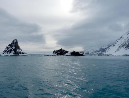 We departed, heading south across Bransfield Strait. For a special afternoon tea, Hotel Manager Patrik Svaerdmyr and the hotel staff invited us to see some of the inner workings of the ship, with a diversity of cookies and cakes served in the laundry and beverages served in the bonded storeroom. The crew of National Geographic Explorer operates like a well-tuned machine, ever efficient, ever friendly, and cheerful. What a clever way to give us a behind-the-scenes look at the workings of the ship. We will appreciate our cleaned and freshly ironed clothing all the more.