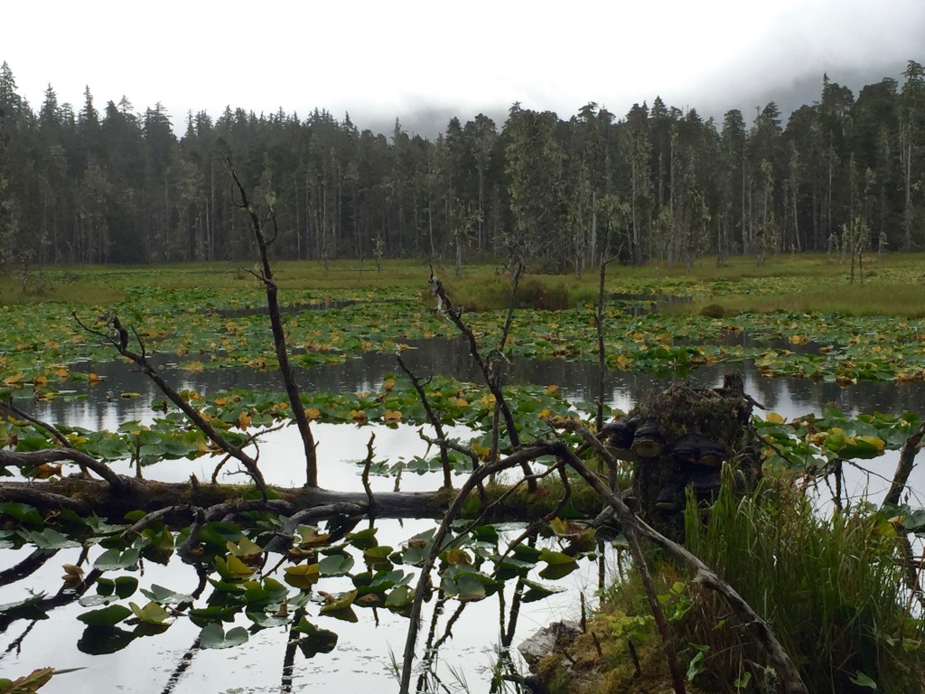 Misty mornings, with wispy clouds floating amongst the lowest topographic contours and the near-silent sound of raindrops, manifest one element of the true character of Southeast Alaska. Such precipitation, reaching over 100 inches per year, both fuels and sustains the temperate rain forest, muskeg, and glacier ecosystems we’ve explored on this expedition.