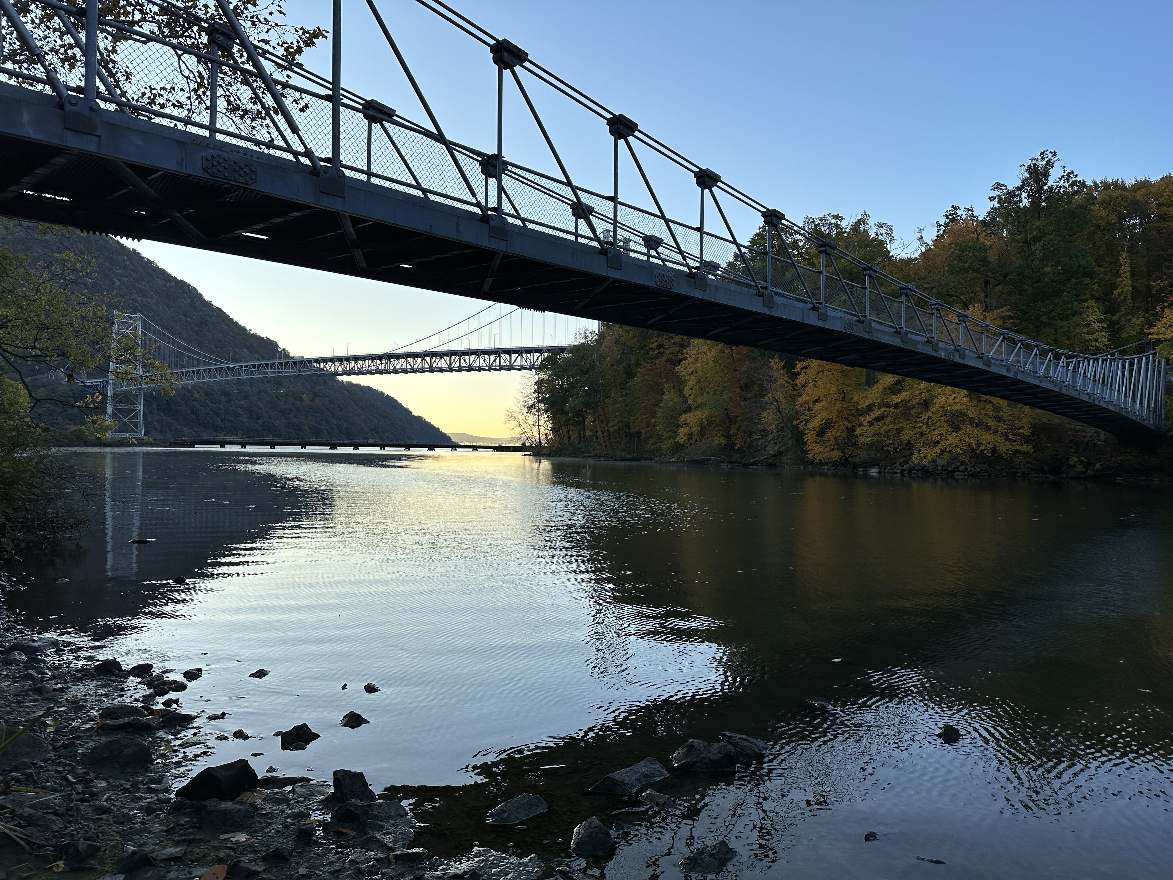 Our day began early near the Bear Mountain Bridge, also known as the Purple Heart Veterans Memorial Bridge. Kayaking, hiking, and Zodiac rides were on offer. The morning light hit the water and reflected the bridges, the colorful fall leaves, and the paddlers in kayaks. Adventurous hikers made their way up to and across the Bear Mountain Bridge to look down upon the Hudson River that has been at the core of our journey.