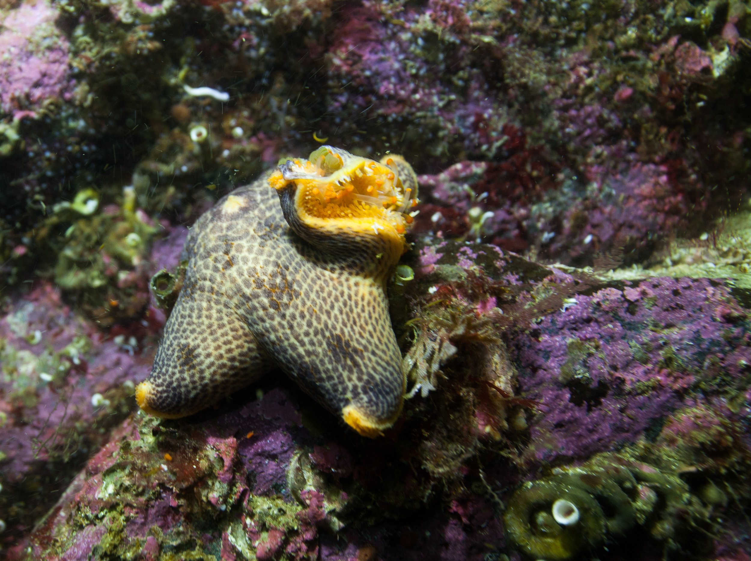 During lunch we travel a short distance to the north and dropped the anchor at the Hobbit Hole, a quiet place in the middle of the Inian Islands. The Inians are a small group of islands located between Chichagof Island and the southern portion of Glacier Bay National Park on the mainland, and they create a bottleneck effect for the strong tidal currents that flow in and out of the northern part of the Inside Passage four times every 24 hours and 50 minutes. The currents bring fish and the local population of Steller sea lions know it; when the water flow is fast and turbulent, the huge pinnipeds swim around with ease and capture salmon, rockfish, or halibut to satisfy their enormous appetites. If the prey is too big to swallow it whole, they shake it violently at the surface in an effort to break it into more manageable pieces that end up attracting a multitude of gulls and even bald eagles. Pigeon guillemonts, marbled and ancient murrelets, and tufted puffins adorned the waters, whereas sea otters rested in the middle of the same kelp forests that they protect by eating sea urchins, a favorite prey species. All that life and dynamism around us made for another great day exploring coastal Alaska.