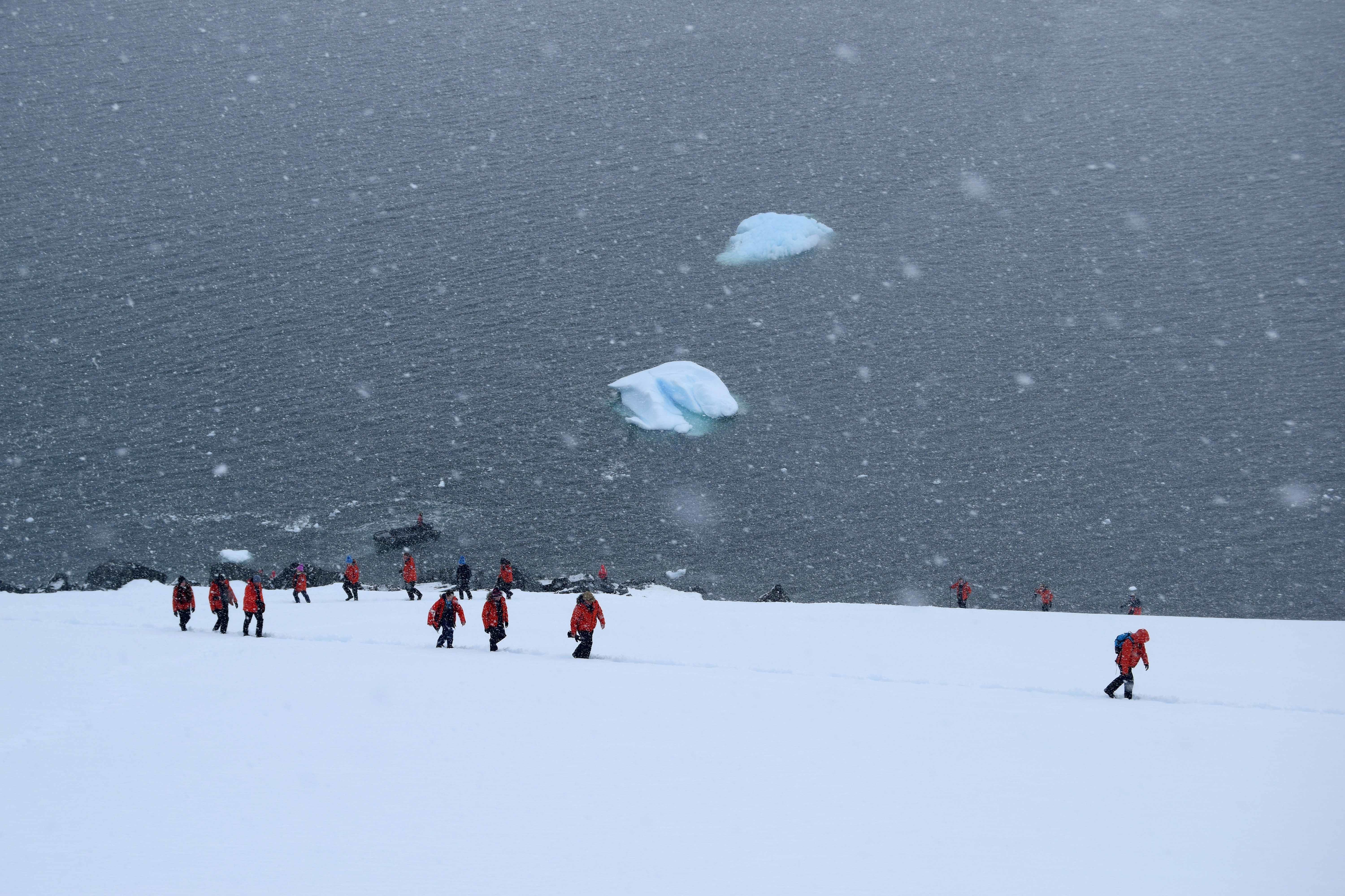 During lunch our experienced bridge team navigated the ship through the narrow Peltier channel while the steep mountains of Wiencke Island towered above us. In the afternoon, we were afforded the rare opportunity to visit Palmer Station, which is one of three stations operated by the United States Antarctic Program. We were given a tour of the station facilities and enjoyed some freshly baked brownies before we headed back to the ship. Once back on board, we recapped the day and look forward to a true day of exploration tomorrow.