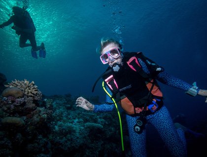For our afternoon activities, we repositioned our lovely ship to nearby Lelepa Island for a visit to the Fels Cave UNESCO World Heritage Site. Of course, with water temps in the 80s and a nice lee shore out of the trade winds, some of us went submarine rather than subterranean. With a few more newcomers joining the dive group, this was the final “first dive” of the voyage for us all and an opportunity to explore with a true ocean legend, Valerie Taylor. Through her decades of underwater filmmaking and photography, Valerie has impacted thousands, if not millions of people and helped shape how we view the ocean today. If it weren’t for her work, many of us may have never fallen in love with the deep blue. This was a dive we won’t forget if for no other reason than we all got smoked by Valerie’s fluid fin kicks.