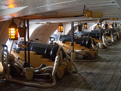 Most guests focused their morning visit on the HMS Victory, the preserved flagship of Admiral Nelson. Today one can walk through the ship stepping on the same oaken decks that many a sailor did during the in service life of the ship. The keel of the ship was laid down in 1759 and ready for service by 1765. Probably the most noteworthy event in the ship’s life was at the Battle of Trafalgar in 1805. Under the command of Lord Nelson the ship engaged the Spanish and French navies. On the deck of the Victory Lord Nelson was shot and died but the Battle of Trafalgar was won. The ship’s 104 guns still stand waiting at read.