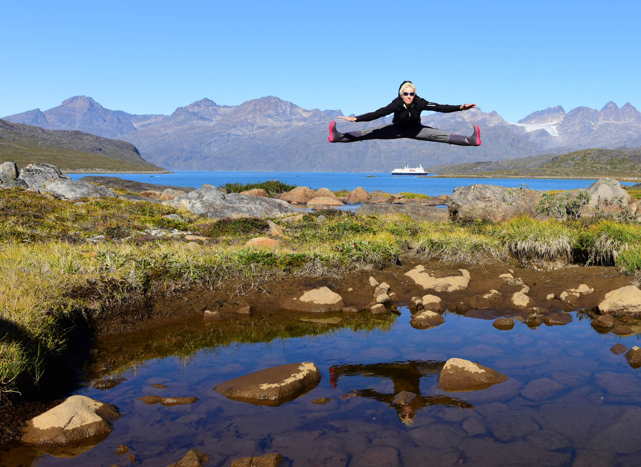 After lunch we all go ashore at a place called Illorssuit, perhaps named for the large, house-sized boulders or for the occasional iceberg that drifts by and catches on a sandbar. It is gorgeous here. The long hikers take off for a glacier whose snout is deemed safe to walk upon by our scouting team. Then there are the medium hikers and photo walkers. Plenty for everyone to do… I go medium, mostly in search of fun plants and plant-like things; the latter would mostly be lichens, fungi that ‘farm’ an algae and/or photosynthetic bacteria. Apparent bare ground between the Sound and the huge boulders, upon closer inspection, is covered with a foam-like material, no, not material, but lichens: pale foam lichen, brittle brown Iceland moss (lichen), yellowish snow lichen and delicate reindeer moss (lichen) with tiny branches that end in grasping fingers… a sight rarely seen outside of the polar and alpine regions.
