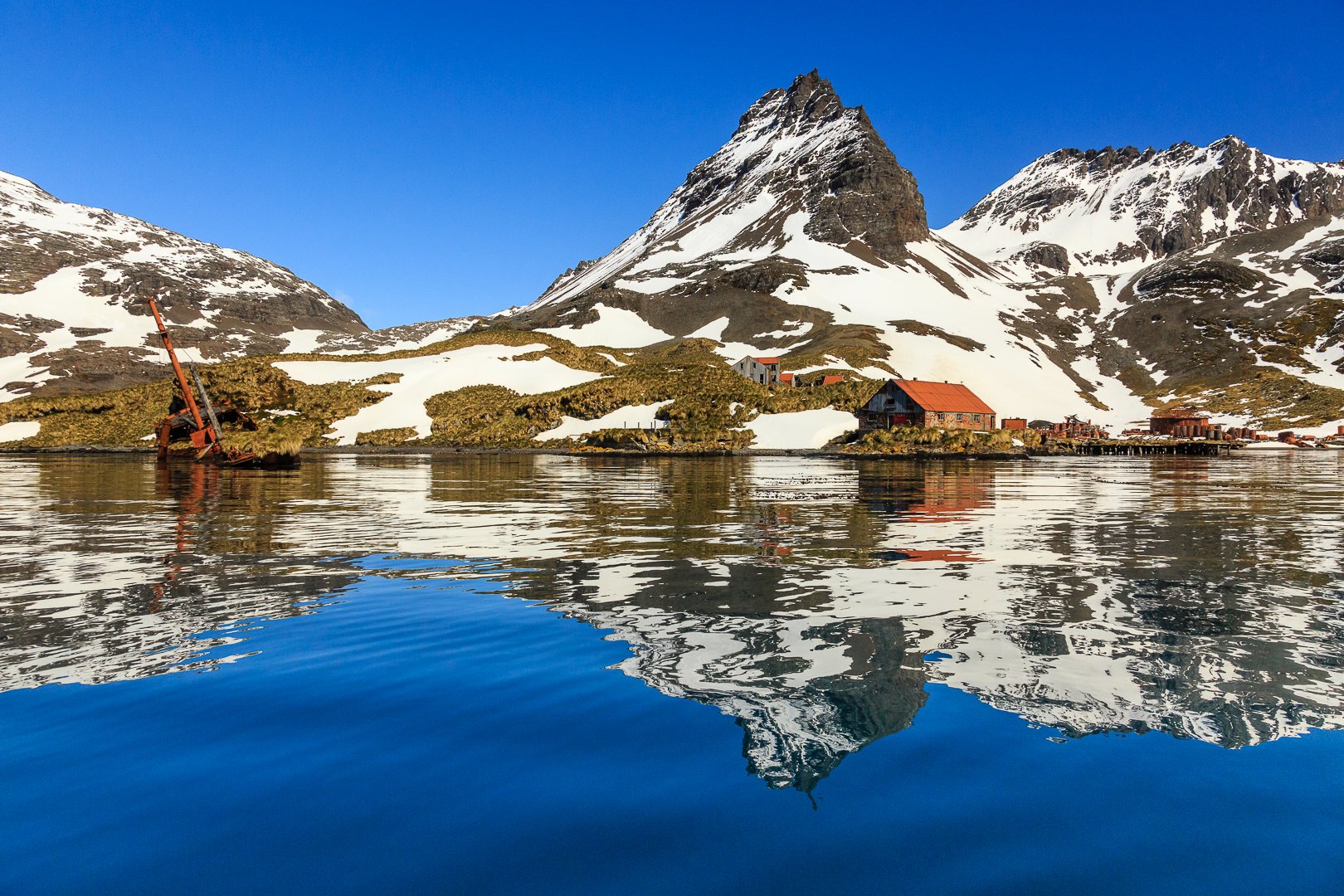 By the end of breakfast National Geographic Orion was navigating into Prince Olav Harbour. The entrance was spectacular, with the historic whaling station off the starboard side set against towering, snow-capped mountain peaks. This is the area along the coast of South Georgia where Captain Cook reportedly came ashore in 1775. Within a couple of decades following his discovery of great numbers of Southern fur seals, the sealing industry here began. The scene outside could not have been more beautiful.