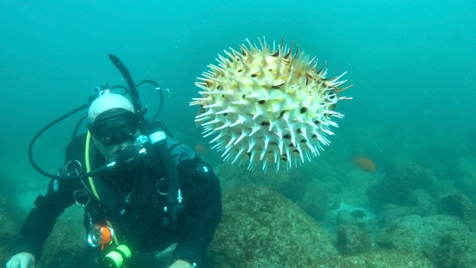 Having crossed the Tropic of Cancer after navigating south through the night, this morning we woke up inside the tropics near the tiny town of Cabo Pulmo. The sleepy village is now world famous because of the tremendous success of the Cabo Pulmo National Park, created by the Mexican government in 1995. With the local people being the most interested in the protection of the waters off their homes, they made sure that the new rules were enforced and as a result, fish populations recovered in a big way. Researchers that monitored the recovery shocked the world a few years ago when they published their results showing a staggering 463% rebound of biomass, the biggest of any marine protected area in the planet. An extraordinary example of how nature can come back if we give her a chance. Today, Cabo Pulmo is still a quiet sleepy place where divers from all over the world go to admire the huge schools of jacks, goatfishes, groupers, and many other reef fish species. The whole area around the southernmost part of the Baja California peninsula is also very special for another reason; it is one of the main breeding areas for humpback whales in the North Pacific. We started encountering those marvelous creatures early in the morning and continued to do so throughout the day. Humpbacks travel here from faraway places like the coasts of Oregon and Washington, British Columbia, and even the Aleutian Islands where they spend their summers busily feeding. Here, they forget about those gastronomical pleasures and engage in more romantic affairs. Males look for and compete among each other for females, and the cows that got pregnant the season before give birth to their calves in the warm southern Baja waters. Intelligent creatures, the humpbacks delighted and intrigued us with their antics the entire day. Some raised their flukes or 15 ft long pectoral fins up in the air before a deeper dive and so on. We also enjoyed many whales breaching and even saw a few double-breaches today! We later had the opportunity to admire the beautify granitic arch at Land’s End that is a true peninsular icon and enjoyed the view of numerous magnificent frigatebirds, boobies, and other sea birds, as well as a small group of California sea lions that call the place home. Land’s End is also one of the boundaries of the Sea of Cortez and by crossing it after sunset, we entered the open Pacific waters for more adventures to come exploring the marvels of Baja California.