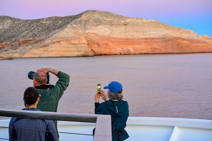 For the afternoon we cruised south towards La Paz. Hundreds of long-beaked common dolphins raced over from the open Sea of Cortez to take turns riding the pressure wave created by National Geographic Venture’s bulbous bow. Cocktail hour was held on the sundeck as the sun set behind the peninsula, and all guests under the age of 18 (plus their grandparents) were allowed a swing at the Christmas piñata. After an amazing Christmas feast, we enjoyed a slideshow of photos taken by guests during the trip and then strolled down the Malecon for some ice cream and city lights to end a wonderful holiday expedition.