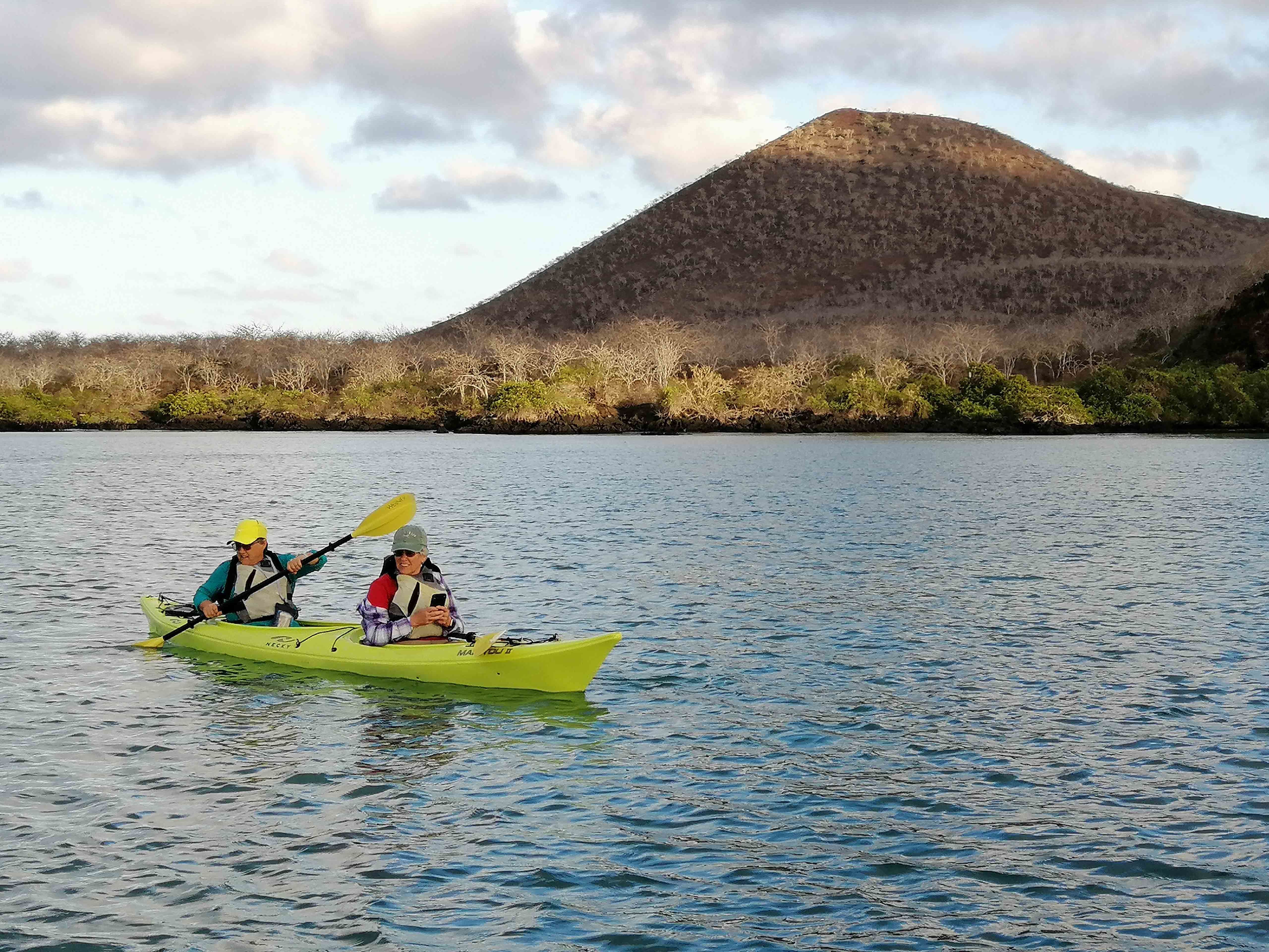 Early this morning we went for a walk at Punta Cormorant, and observed blue-footed boobies, American flamingos, and Pacific green sea turtles – it was a fantastic morning! After breakfast we went around Champion Islet and encountered more wildlife, Galapagos sea lions, Galapagos shear waters, and brown noddies to name a few. Our guests enjoyed great snorkeling with silvery and colorful fish and in the afternoon, after a visit to Post Office Bay, we went kayaking among the protected waters of Baroness Bay. We saw so many Pacific green sea turtles and white-tipped reef sharks. Another great day in Paradise!
