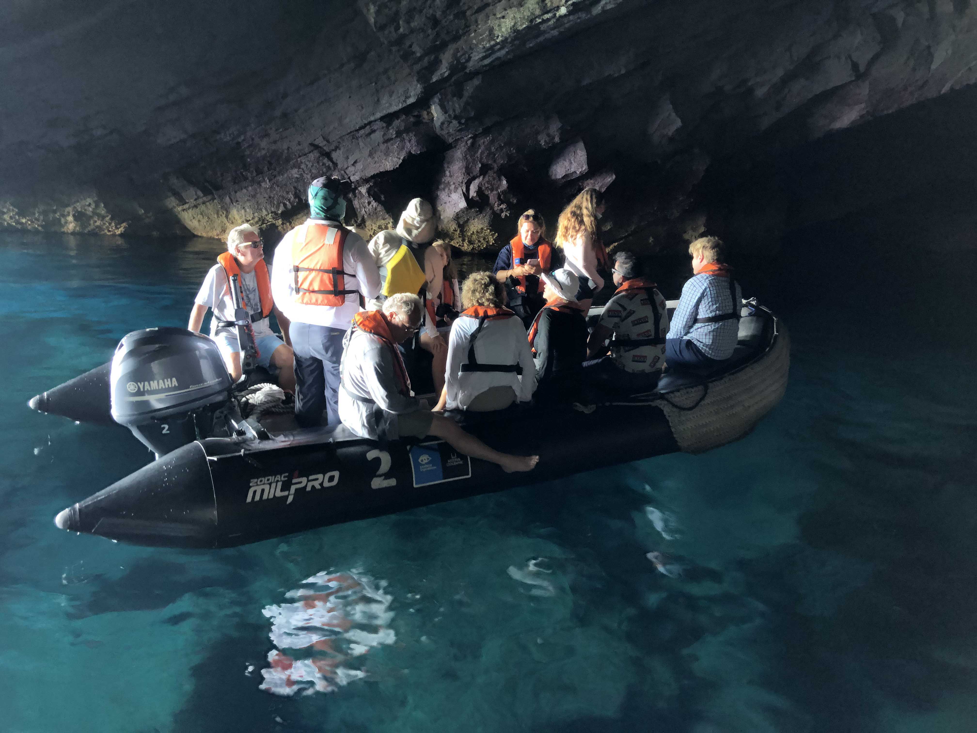 At lunch, we had a Mexican feast with margaritas and enchiladas. After siesta, we took a Zodiac ride along Punta Vicente Roca. The surprises are endless aboard the National Geographic Endeavour II. Our captain took us across the Equatorial Line and into the northern hemisphere while we celebrated with a wine tasting.