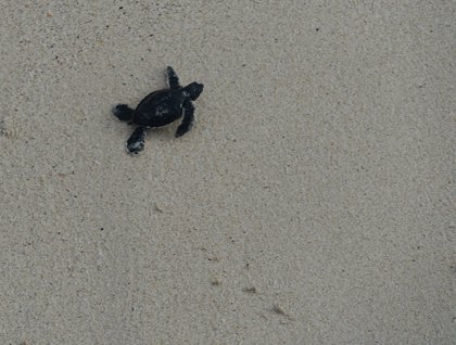 After lunch we spent the afternoon in Cerro Brujo, a nearby tuff cone. Our purpose was to enjoy the coralline beach. We also saw wildlife: Sea lions, blue-footed boobies, terns, pelicans, ghost crabs... and baby sea turtles coming from the nest and running into the ocean!!! It was a great adventure.  At the end of the afternoon everyone was very happy, and together with an impressive sunset as the background, we concluded our last day in paradise.