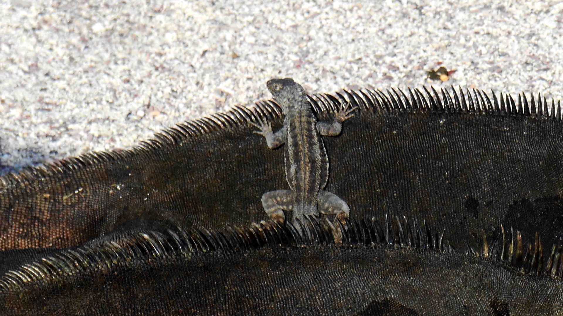 In the afternoon we moved to Fernandina Island, the most isolated and pristine wildlife sanctuary of the archipelago. The only authorized visiting site on this magical island is Punta Espinoza. Here we encountered a colony of sea lions with many nursing pups. The relaxed appearance of the sea lions at this site did not diminish their fascinating presence. One of these sea lions was resting quietly while we discovered a Galapagos banded snake which was hunting a yellow warbler, though unsuccessfully. The walk around this spectacular paradise also gave as the opportunity to observe the curious endemic flightless cormorant. The Galapagos cormorant is the largest of its 27-member genus. This particular adaptation provides them a greater body mass, which enables them to dive for extended periods. We were able to identify some larger males and compare their size of those smaller females. As we continued along the trail, a massive colony of marine iguanas surrounded us with their laidback presence. Here we saw how a lava lizard helped marine iguanas to get rid of flies by eating them.