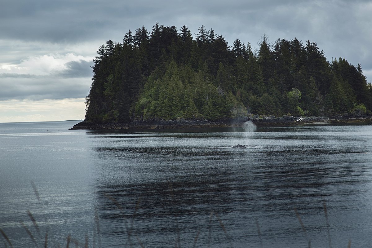 Once we’d eaten we boarded a school bus for a tour of the Haida Heritage Center and Museum, where we saw cultural artifacts and totems with interpretive tours. We even saw a humpback whale surface just off shore under the totems, which was a very special treat.