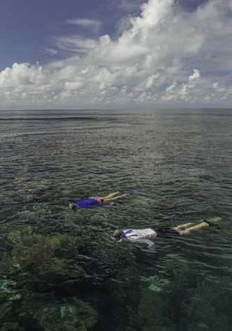 Many of us enjoyed a short nap to begin the afternoon before returning to the snorkel platform for further explorations of the coral kingdom beneath the surface of the warm blue seas. Everywhere we swam, everywhere we looked, we discovered more to see – a group of small squid, bright blue sea stars, corals like castles and little blennies peeping from holes. Even after a full day in the water we were reluctant to return to the ship, until we got the call for sunset cocktails on the aft deck, a perfect end to a perfect day on a perfect little tropical island.