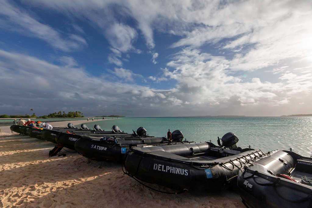 Today was a pure atoll day for us, beginning with snorkeling, diving, and an amazing visit to a castaway couple who have been living alone on Raroia for over 20 years. In the afternoon we boarded the Zodiacs and navigated through a very narrow channel, into the lagoon of Takume for a beach landing that featured ice cream, strolling in the crystal clear shallows, and meeting a particularly friendly member of the local wildlife.
