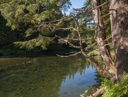 It was hard to believe that we still had an entire afternoon ahead of us, but as we pulled into the cove at Lake Eva. Here we walk among old growth forest, which fed both our souls and our imaginations. We hiked along paths lined by dwarf dogwood and foamflower and with the background noise of eagles calling. We reached the beginning of the lake and watched with wonder as hundreds of salmon swam below our perch. We were witnesses to the beginnings of one of the great natural wonders of the world, the annual return of the salmon that is a cornerstone of life in Southeast Alaska.