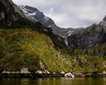 After a delicious lunch of fish tacos and guacamole, we landed at picturesque Elsehul Bay. Guests chose to either take a Zodiac cruise or hike up the rim of the bay to get a closer look at the petrels and albatross nesting in the high grasses. From the Zodiacs, guests watched an abundance of birds—including grey-headed and light-mantled albatross—flying overhead. Nesting South Georgia shags and macaroni penguins could be seen along the cliffs. The trip was pleasantly interrupted by the arrival of a Viking vessel. The Vikings provided hot cocoa on the chilly ride. On the hike, guests got a bird’s-eye view of petrels, skuas, albatross, pipits, snowy sheathbills, and gentoo penguins. Although the climb was slick and rocky and took a considerable amount of effort for the climbers, it proved to be well worth it.