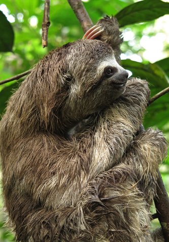 Our first visit of the day was along a trail in a place called Casual. Here, two of the folks that live along the river became our forest investigators. As our well experience guides introduced the rainforest plants, and the local ethnobotany, the local folks from Casual scoured the rainforest looking for critters of interest. They found a plethora of critters that we were certainly interested in viewing, photographing and learning of their lifestyles and adaptations to rainforest life. The brown-throated three-toed sloth that sat in a tree at eye level was our first spoiler. Aren’t you supposed to have to look way up to see a sloth? Not this morning. Next up was a mata mata turtle. It has wonderful appendages sticking out all over its face neck and legs to facilitate its blending into the leaf litter of a shallow drainage or stream. Don’t worry little frogs and fish; I’m just a pile of leaves. The red-tailed boa constrictor was impressive, as was the fruit bat, but not to be outdone by the profusely hairy legged bird-eating tarantula and a pink-toed tarantula.