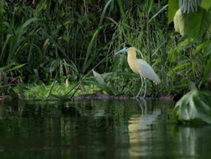 We closed our day with one more skiff ride. Red-capped cardinals were found in the more shrubby riverside vegetation, along with the Oriole Blackbirds, while the elegantly plumed Capped Heron stood in places where their seemed to be less brush and undergrowth, perfect for admiring its reflection in the black water.