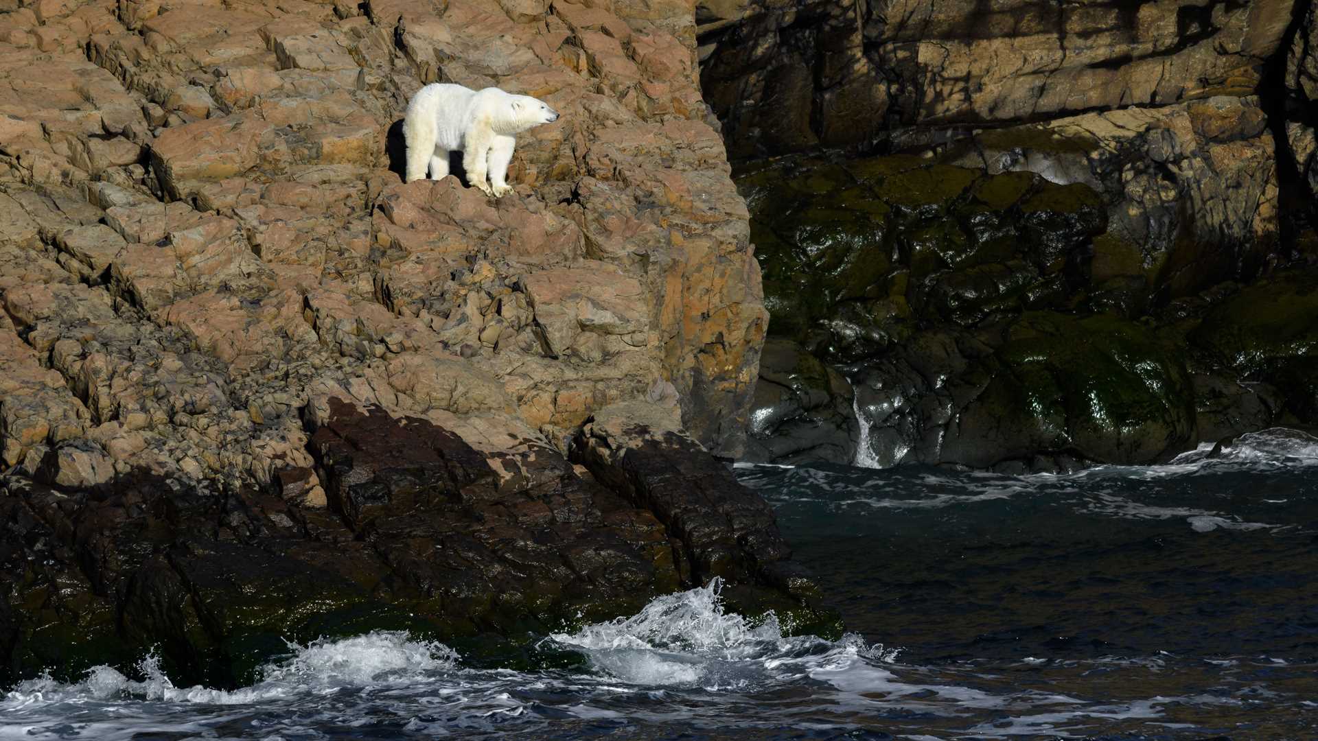 Our Zodiac cruise turned into a real wildlife spectacle! Within a few minutes, we spotted two walrus and yet another polar bear resting on the beach. We had fantastic views from the Zodiacs. With our voices lowered, we enjoyed the bear as well as a group of harp seals that swam past the boats. Further inside the fjord, the first slivers of grease ice coated the water, harbingers of the approaching winter. Nights are cold enough for ice to start forming in calm conditions.
