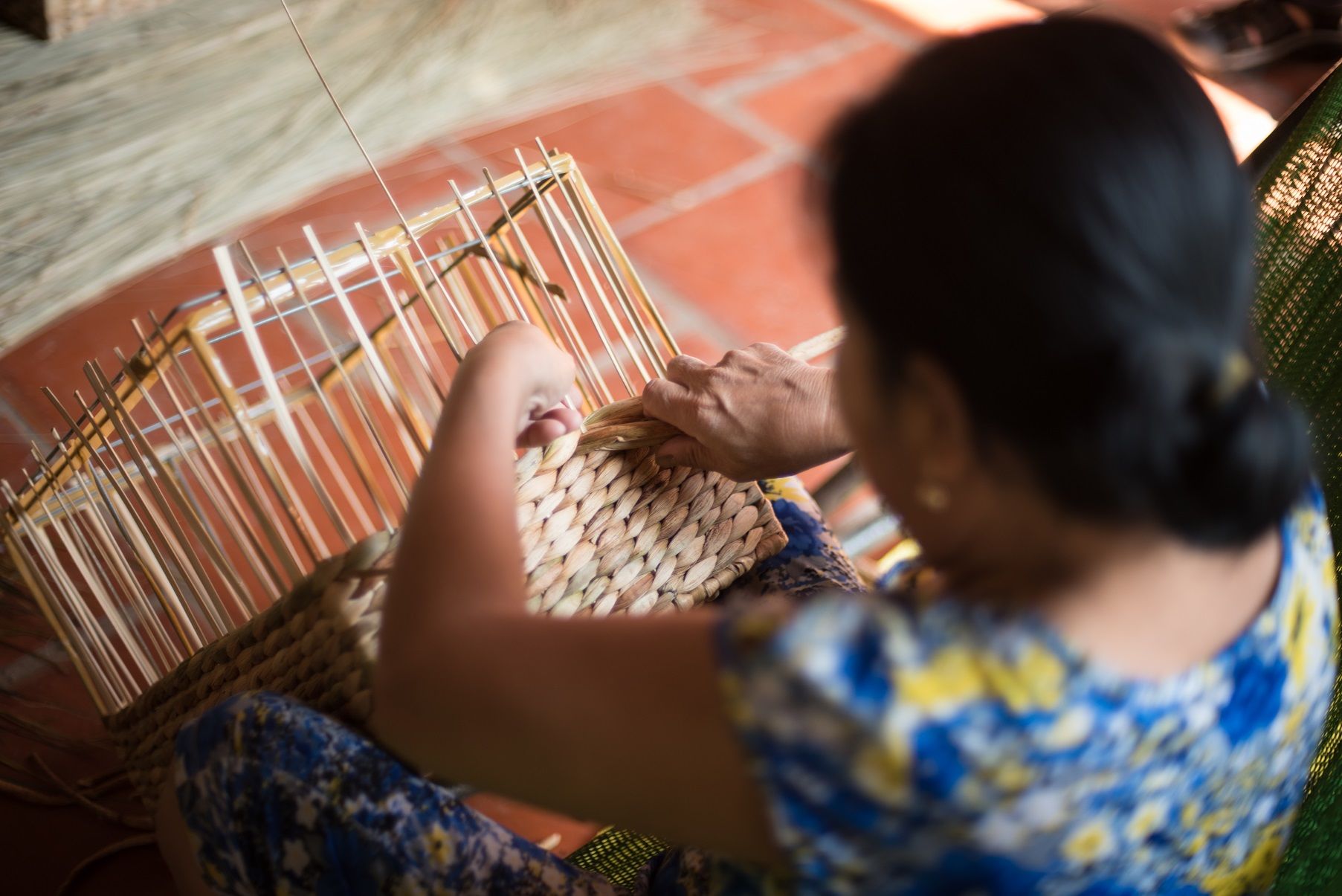 Today was our last full day on the river, and we spent it well, cruising through the Lower Mekong River in Vietnam. We set anchor near the town of Sa Dec, taking that morning to venture along the neighboring island of Binh Tanh. It began on a local sampan boat, transiting small waterways of rafts carrying water hyacinth in all directions. When we arrived at Binh Tanh, we stopped to see locals in the village weave together the traditional reed mats they have made for many years, if not decades. On one occasion we witnessed the amazing sight of a woman making furniture out of the very hyacinth we had seen transported by raft that morning!