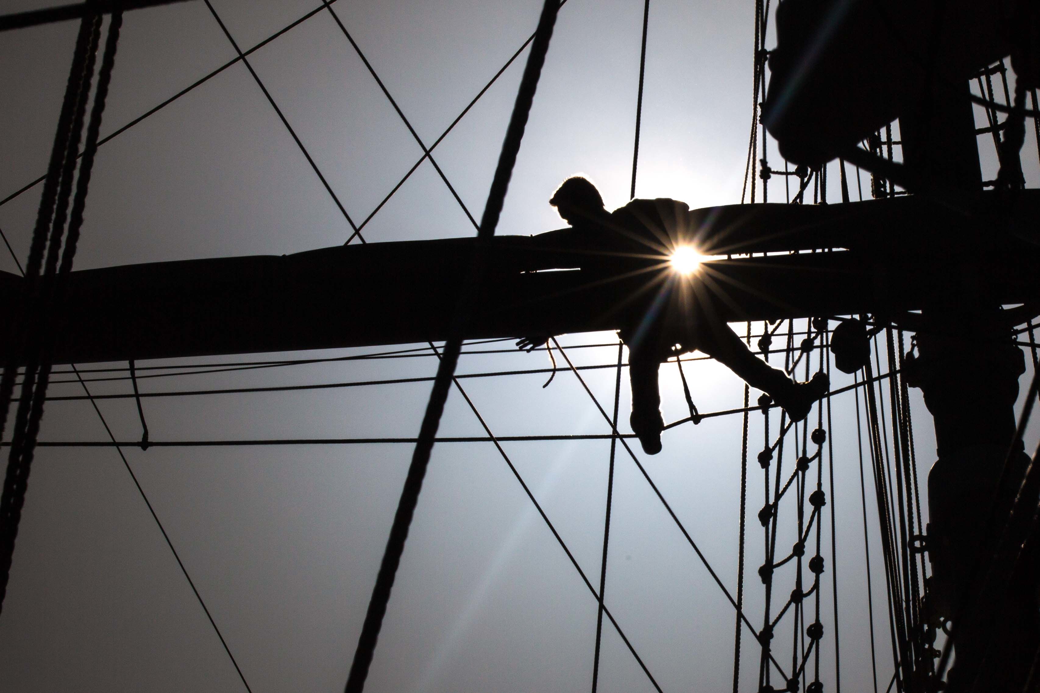 The sun rose majestically at 6:30 a.m. We had an easterly wind at 17 knots from the quarter starboard beam. Three of the staysails were set earlier, providing some additional power and help to keep us on course. At 8:45 Tom O’Brien gave an informative talk on the sails and lines of the Sea Cloud and how they function. Staff introductions took place on the Lido at 10:15. At one point during the late morning we were making 8 knots under sail. Imagine a ship over 360’ long and displacing 2600 tons moving effortlessly under wind power alone at 10mph. Our sails are made of a very durable synthetic material in Poland and have an average life of about five years. The Sea Cloud carries almost 28 thousand square feet of sail (2650 meters).