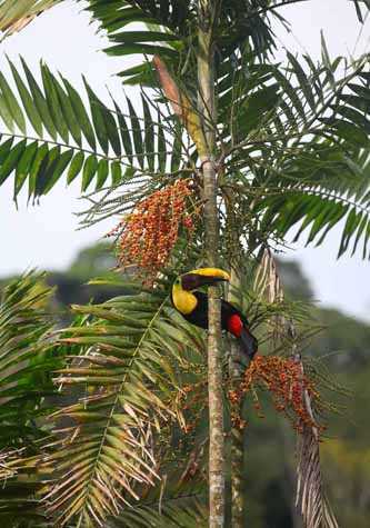Lunch on board the National Geographic Sea Lion was followed by the “global market”—a chance for guests to buy exquisite Kuna molas and Embera-Wounaan baskets—as we repositioned to Casa Orquideas. We went ashore in mid-afternoon to explore this remarkable botanical garden on the shores of Golfo Dulce. Staff members led walking tours themed to birding, botany, and photography. Our visit was highlighted when a pair of scarlet macaws flew in to feed, followed by a flock of toucans and their equally colorful and noisy cousins, fiery-billed aracaris. Everyone was delighted by this unusual concentration of birds feeding on mangoes and palm fruits almost within fingertip reach.