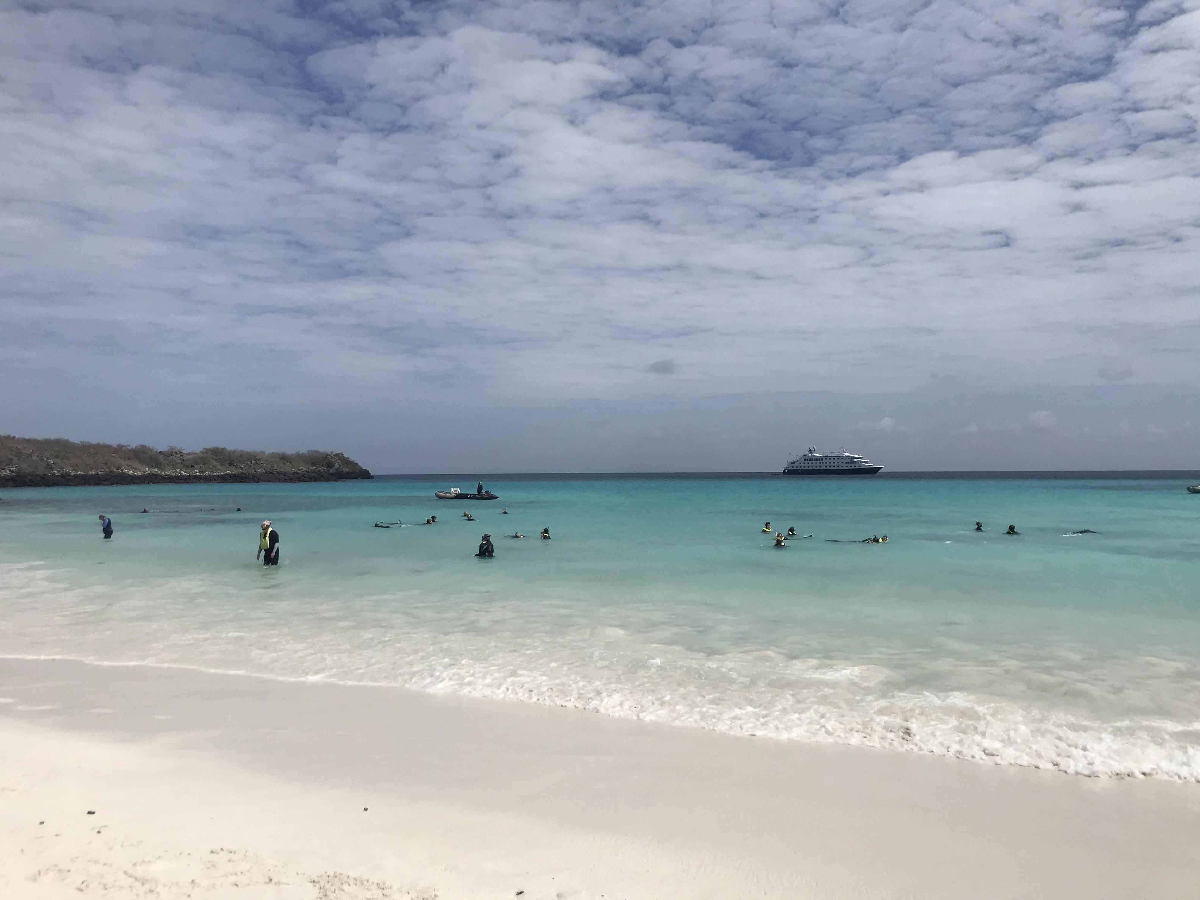 In the afternoon we walked along the white sandy beach of Cerro Brujo, where a quick dip in the water was very hard to resist! Sea lions were observed recuperating from the exhaustion that chasing fish results in, and lava gulls stood at attention in front of us. It was the perfect ending to a magical week in the Galapagos.
