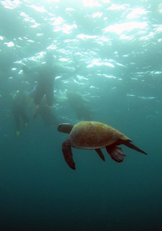 Our destination for our last snorkel looked totally awesome, especially when seen from the diminutive perspective of a Zodiac at water level.  That didn’t faze the adventurous snorkelers at all, so off we went and what a trip! We witnessed black-tipped sharks, spotted eagle rays, mustard rays, many, many green sea turtles, and one briefly-glimpsed hammerhead shark.