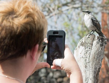 At the end of the morning, we returned to the National Geographic Endeavour and started to navigate towards Leon Dormido. This islet offered a great opportunity to have a more adventurous snorkeling, as it is far off of the coast and surrounded by deep waters. During the snorkeling outing, some of our guests encountered hammerhead sharks, Galapagos sharks, green sea turtles and many different species of fish. After snorkeling, we navigated around this islet with the ship and observed the always impressive cliffs and the many birds that nest here.