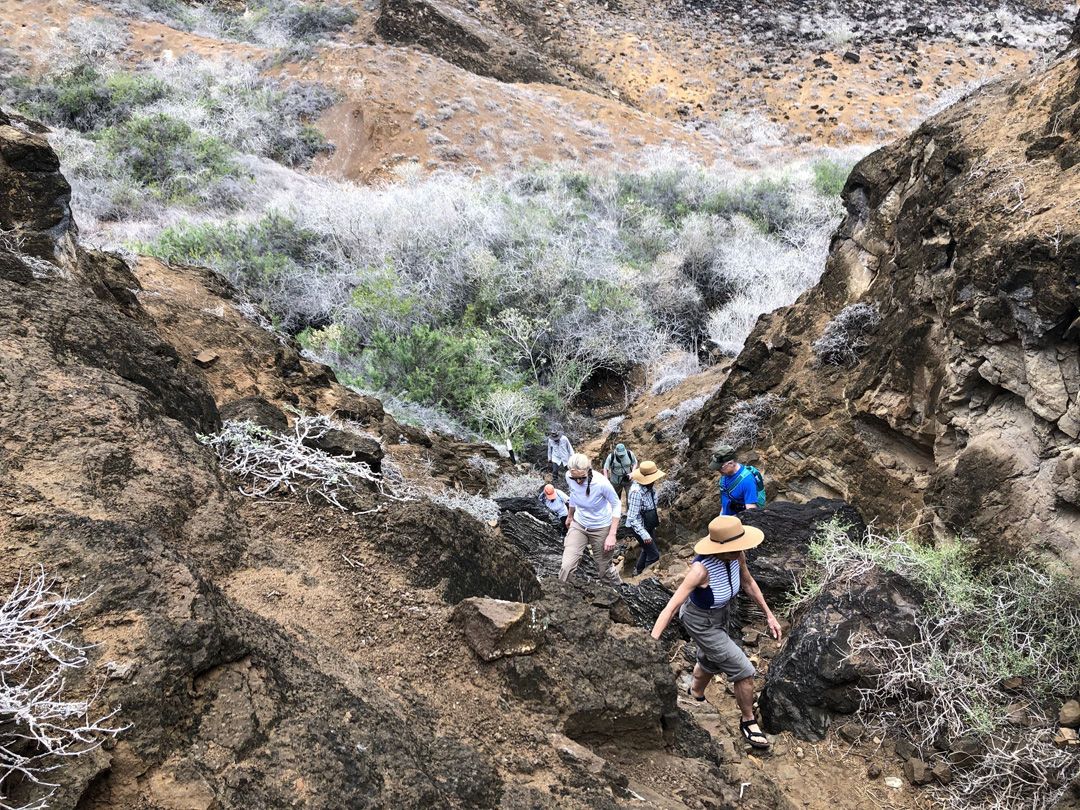 It’s our first full day of expedition on National Geographic Islander . We started our day with a morning hike on North Seymour, which is one of the best islands to observe nesting colonies of frigatebirds, blue-footed boobies, swallow-tailed gulls, and many more species of marine birds. Later in the morning, National Geographic Islander navigated to the beautiful Rabida Island, where we enjoyed an amazing afternoon. Guests swam and snorkeled with sea lions and many different species of reef fish off the red sand beach. We walked to a pond located behind the beach and observed flamingos nesting after more than 20 years on this island.