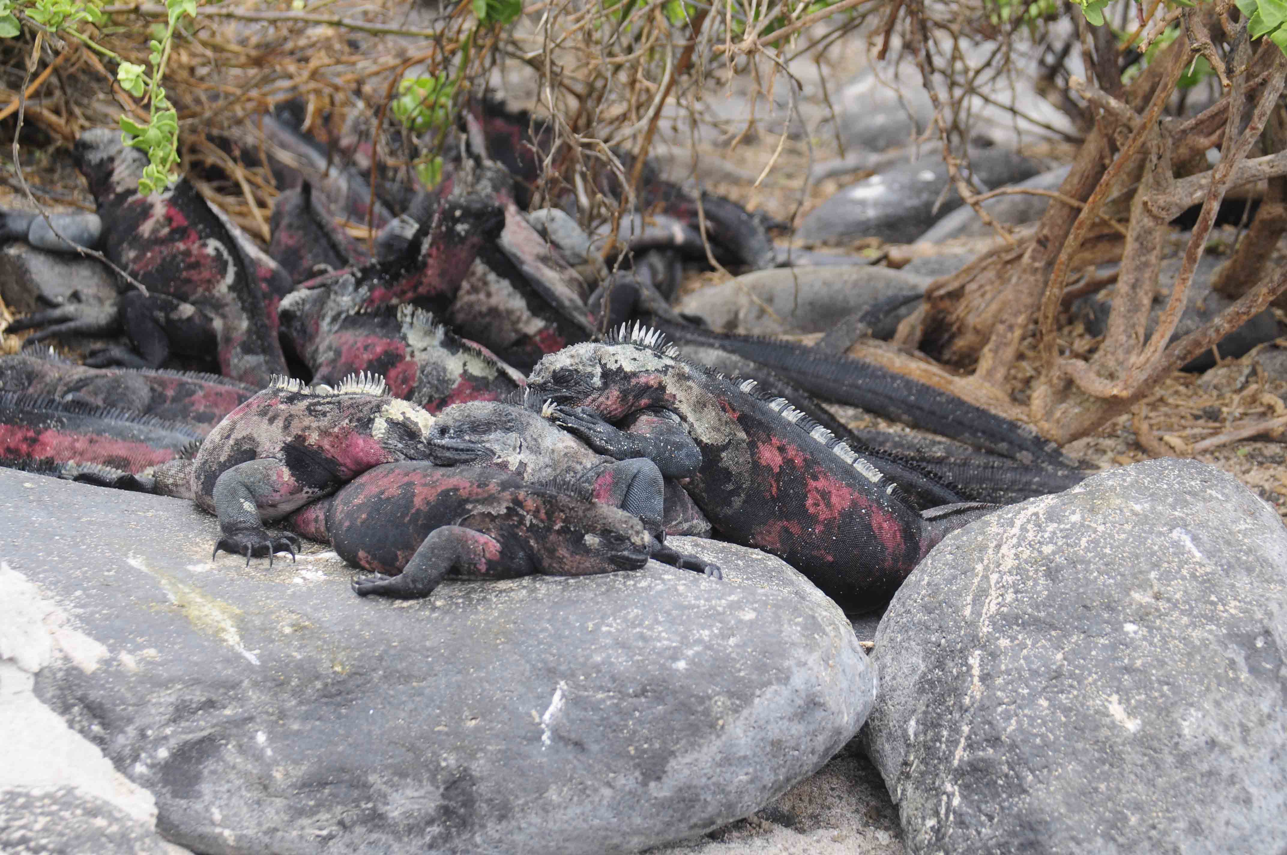 We woke up early in the morning as National Geographic Islander navigated along the northern part of Isabela Island. Slowly the sun appeared above the clouds surrounding Volcano Wolf. We spotted our first birds as Galapagos fur seals returned to shore from their night hunt. We enjoyed a great breakfast. Afterward, expedition leader Vanessa called everyone to the bow to celebrate as we crossed the equator. Our guests happily crossed the line. Approaching Punta Vicente Roca, the visitor site, we spotted Galapagos sea lions and a good number of ocean sunfish. The first activity of the day took place as we dropped anchor at Punta Vicente Roca. This is a spectacular geological site. The combination of the former volcano’s tall cliffs and the tuff cones formed later adds an amazing contrast to this unique visitor site. Our best tools for exploration, our Zodiacs, were lowered down, and off we went to explore the coast. We observed Nazca boobies and blue-footed boobies resting on the small ledges of the tuff cones. Galapagos sea lions swam close to our Zodiac, and Galapagos penguins rested on a broken piece of the tuff cone after feeding. What a wonderful sight! In a calm area, we found a good number of Pacific green sea turtles. The morning’s activities ended with snorkeling. Pacific green sea turtles, plenty of colorful fish, Galapagos marine iguanas and flightless cormorants surrounded us. It was a phenomenal experience! The ship was repositioned toward Fernandina Island. The youngest island of the archipelago, Fernandina is a highlight of our expedition. This island shows our guests the beginning of life. We observed animals thriving in the hostile environment. Pioneer plants like lava cacti grow on the lava fields, breaking down rocks little by little to create soil for the next generation of plants. Punta Espinoza is known for its huge colony of Galapagos marine iguanas. It is hard to distinguish the iguanas from rocks since they are so dark in color. On the other hand, colorful Sally Lightfoot crabs added contrast to the young, dark lava fields. We ended our walk as the sun was setting, returning to the ship with great memories. It was a fantastic day in the western part of the archipelago.