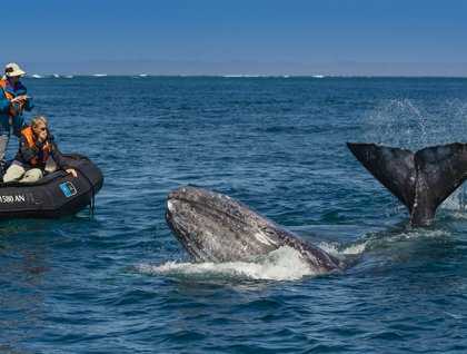 Imagine a 35-foot long, 30-ton whale rubbing up against the bottom of your 17-foot inflatable boat. Add a 20-foot long, 5-ton baby lifting its eye above the water to get a look at you, then approaching your boat wanting to make contact, and you have an overwhelming situation that fills all your senses and sparks your emotions.