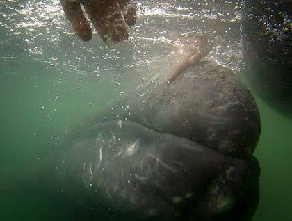 Our second day at San Ignacio Lagoon began with a breeze and a welcome sun. We returned into the mouth of the broad lagoon to search for gray whales from our inflatable boats. Again, today, we were greeted with plenty of whales and lots of wonderful behaviors -- breaches, spy-hopping, and tail splashes -- as we began our morning exploration. Many whales came to investigate our boats and our outstretched hands. Enormous mother whales swam back and forth beneath our boats, as their rambunctious calves flopped over top of their moms, and eagerly rubbed against our boat’s pontoons, rolling onto their backs and spinning beneath us in the swirling tides. Often they would disappear beneath the murky waters, rising again to the surface to surprise us with their repeated enthusiastic attentions. There was plenty of whale petting, and some wet kisses laid upon their squishy and salty snouts by an exuberant few. As we departed our eager new friends, some of the youngsters jumped and splashed, following us as if to protest the departure of their favorite play toys. All in all it was an astounding and delightful experience sharing these mysterious waters with these peaceful great creatures that seemed to welcome our presence.