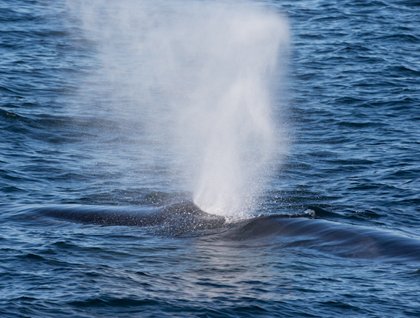We started our day sailing the calm waters in the vicinity of San Marcos and Tortuga Islands; the light breeze and lack of clouds in the sky made a great combination for a very nice morning. We watched numerous flocks of phalaropes –small, sea-going migratory birds related to the sandpipers- sitting in the water or flying around, brown boobies plunging trying to capture fish and even the occasional pomarine jaeger or red-billed tropic bird. However, what really made our morning was a group of several fin whales! The second largest whale after the blue, the fin whale is also one of the most handsome, with whitish chevrons and dark blazes on its back and a white right lower jaw (the left one is all dark!). Although the species is found in all the world’s cold and temperate oceans, there is a resident population here of around one thousand individuals that never leaves the Sea of Cortez.