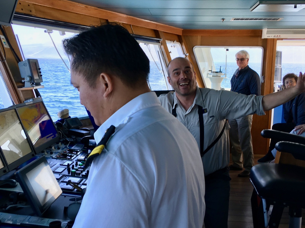 Today we woke up sailing along the picturesque coastline of the Baja peninsula. We had high winds and so while the seas were spicy, spirits were high as we sailed over the ocean. Seeing the waves crashing against the bow is a remarkable sight, and the feeling of exploration was palpable. We had an incredible presentation by our undersea specialist, James Hyde, on the incredibly intricate and fragile topic of plankton. Filled with beautiful videos and a wealth of knowledge, we were moved by the importance of this biodiverse and beautiful part of the dance of the ocean. Closing his presentation, we toasted to an exciting day at sea with bloody marys. One of our bartenders, Derek, served them up in a beautiful style while we lounged and enjoyed the seas. These weeks are so jam-packed with activities that it was a true gift to enjoy some downtime. Our photography instructor, Shayne Sanders, was available in the lounge all day to help with photo transfers and to continue teaching us the tools we have been learning all week to improve our photography skills. This could not have come at a better time, as we were soon treated to a mega pod of common dolphins. To see the ocean alive with dolphins all around the vessel was an unforgettable experience. We all leaned over the bow and watched as dozens of dolphins squeaked and rode the ship’s pressure wave. All this before lunch! We then continued to the entrance of the mouth of Magdalena Bay. We began seeing the blows from gray whales as we entered the calm and protected waters. This was an incredible day that showcased the magic of the Baja coastline.