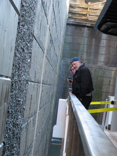 We saw numerous Dall’s porpoise on our route. They’re about 350 pounds, black and white, and can reach speeds of up to 35 mph. On Whale Rocks, we spotted numerous Steller sea lions growling, rumbling, and jostling for position with Mt. Baker in the distance. Mt. Baker, with an elevation of 10,800 feet, is an icon in this corner of the Pacific Northwest. It’s an active volcano in the Cascade Mountain Range—the same range as Mt. St. Helens that erupted back in 1980.
