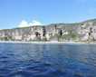 San Pedro Mártir Island rises from the waters of the Midriff section of the Gulf of California like a huge, petrified body of a sea monster. Mainly made of volcanic rock, it originated from the mainland of Mexico as a by-product of the northwesterly, tectonic motion of the peninsula of Baja California. Isolated in the middle of the gulf, its visible strata show the long-lasting processes of faulting, folding, and eroding. It also looks white and green! These colors are the sign of great biological activity on its skin: in fact, since the time San Pedro Mártir was “born”, it serves as a nesting place for thousands of seabirds like blue-footed and brown boobies, red-billed tropicbirds, brown pelicans, least and black storm-petrels, murrelets, and shearwaters. They have deposited thousands of tons of guano (their white poop). Cacti grow in great numbers, forming a “cardónal”, or cardón cactus forest, that tints the island with green. It also holds four species of reptiles, including a western diamondback rattlesnake, and has no land mammals except bats. San Pedro Mártir was a powerful attraction for guano mining companies since 1885. The Mexican Phosphate and Sulfur Company extracted and shipped to San Francisco and Europe about a thousand tons of guano each month, for several years. One hundred and thirty eight Yaqui natives, from the mainland of Mexico, worked on the island as miners, accompanied by their families. Our guests saw the traces of that activity as rock walls built at those times. Nowadays, San Pedro Mártir Island is for the people of the world. Our main activity there was to cruise around the magnificent island, looking at the thousands of birds that are already nesting.