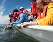 After lunch, National Geographic Sea Lion traveled through the mangrove-lined Hull Canal under sunny skies and with a gentle breeze. On the charts, the canal is identified as unnavigable, but with the combination of our ship’s shallow draft and presence of a highly competent local pilot (3rd generation) on the bridge, our safe passage was ensured. We encountered memorable sights: herons, ibises, and egrets among the mangroves; pelicans, frigates, ospreys, and cormorants in the air; coyotes running over the dunes; bottlenose dolphins riding our bow wave; and five solitary gray whales. Tomorrow brings more whales and dunes.