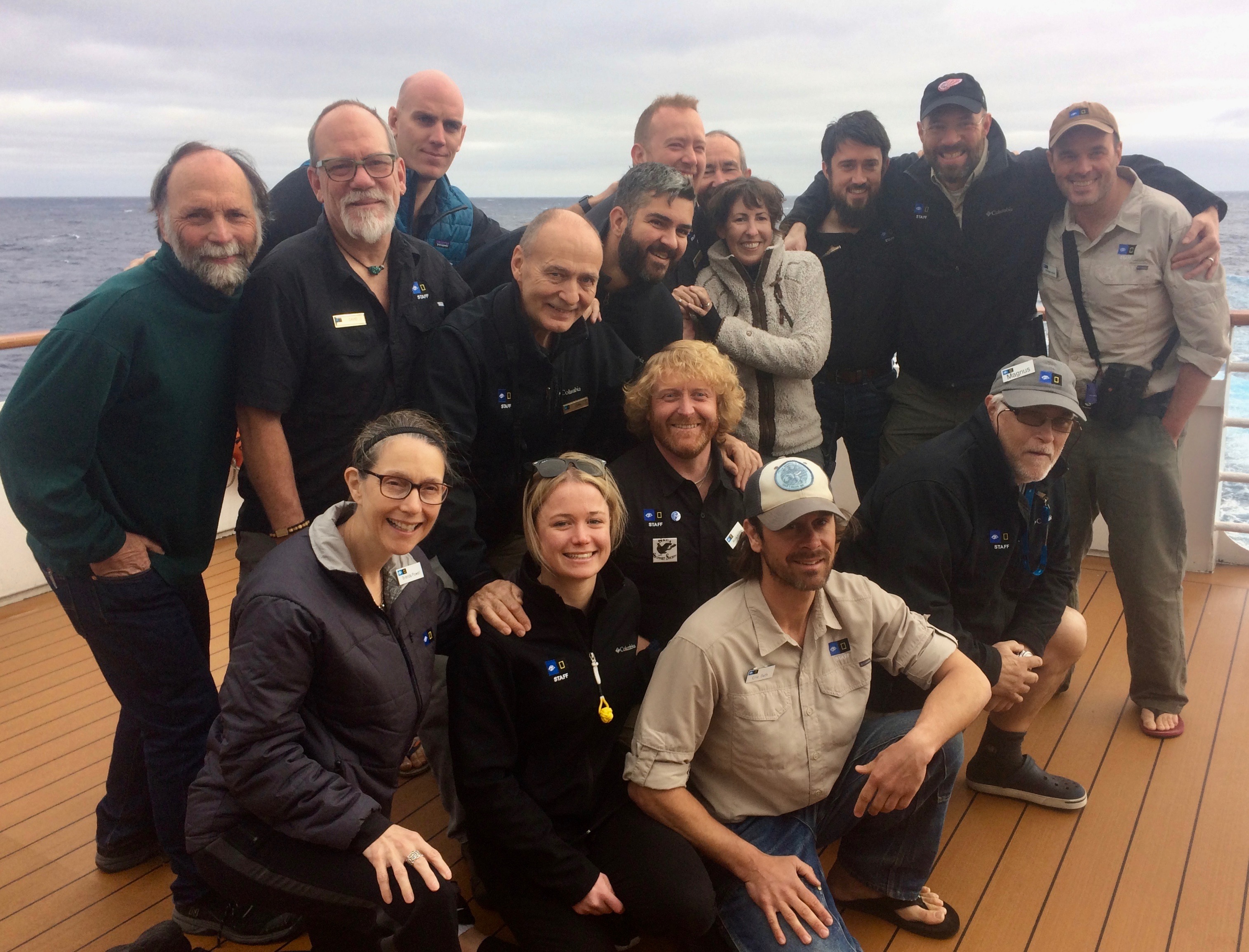 Our first outing of the voyage occurred today on the magnificent island Magdalena, which is a long, low and sandy structure. Both sides of Magdalena Island are beautiful, but the Pacific side is wider and longer, and we call it Sand Dollar Beach—because of the abundance of sand dollars, animals that are related to sea stars and sea urchins. Naturalists and guests alike stretched their legs walking on the sand dunes, and discovered a myriad of organisms as well as signs of their presence. In particular, molluscans and crustaceans called our attention by their abundance and diversity, like these photos show. In the afternoon, the National Geographic Sea Bird transited along the Hull Canal and everybody on board enjoyed the presence of many gray whales, cows and calves and single individuals that performed multiple breeches!