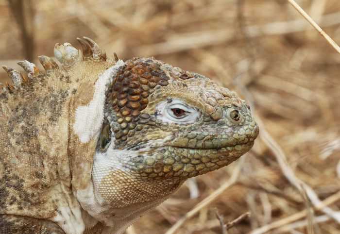 Gray and leafless trees in the dense Palo Santo forest showed us that the rainy season has not yet arrived. The forest is home to several species of land birds, including finches, mockingbirds, warblers and flycatchers. We finally reached the hill where land iguanas live and nest. These iguanas are unafraid of humans and like to bask in the sun.