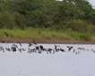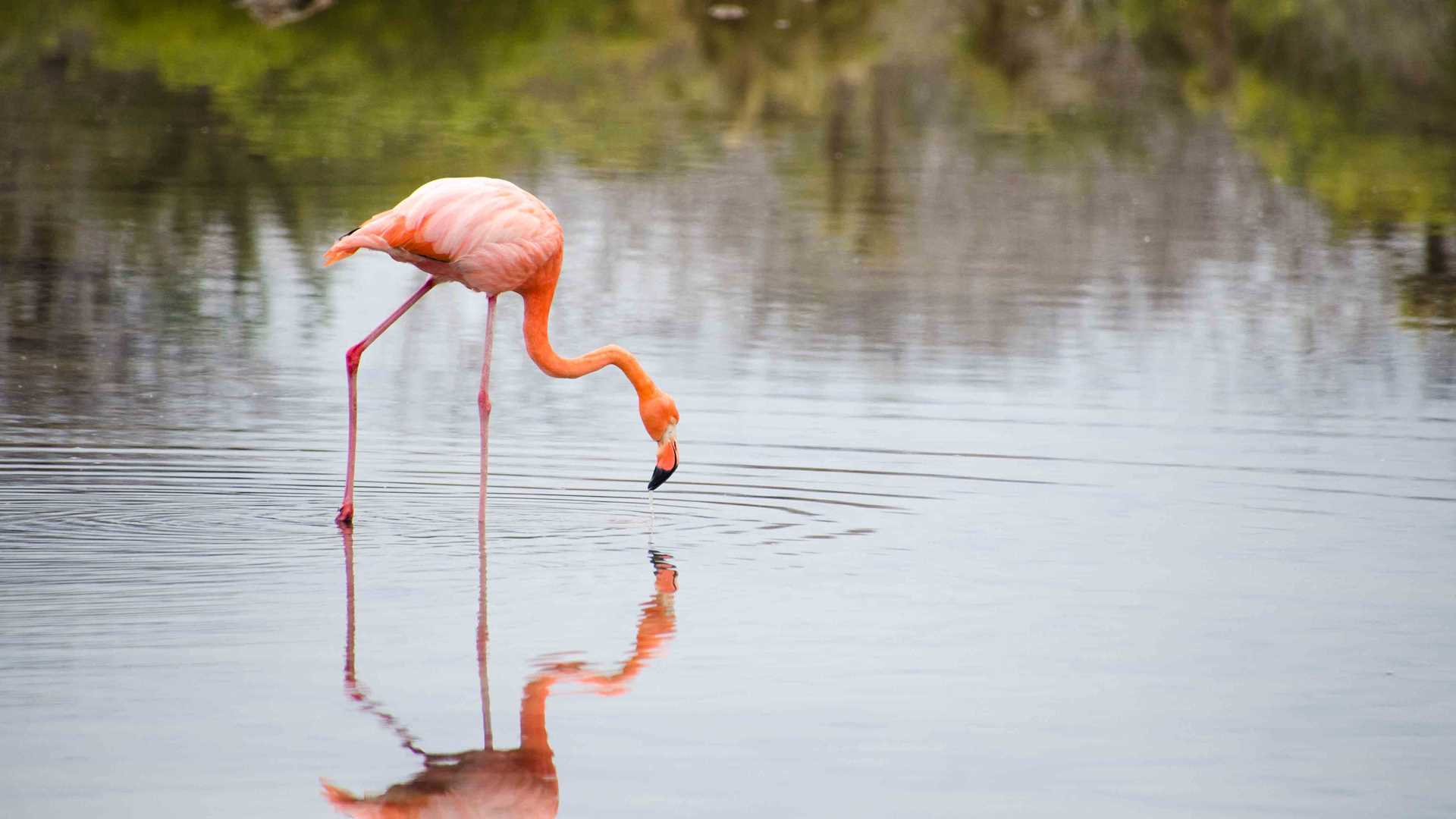 After reaching the shore onboard our sturdy zodiacs we landed on a rocky outcrop and made our way across a small beach to reach the beginning of the inland trail. Right after leaving the shore we noticed a couple of American flamingoes that foraged in a shallow brackish water lagoon right next to us not letting us disturb them as if they would purposely be trying to ignore us.