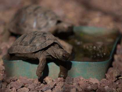 What could be a better sign for a nobler future than to look at a young Galapagos tortoise, exploring its rearing corral on a sunny morning? This is the picture of a lovely little reptile, not older than a year, which was born at the National Park Breeding Center and which someday soon will be repatriated to its home island. It is hard to believe that these tiny little babies could one day weigh over 500 pounds!