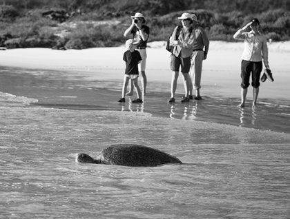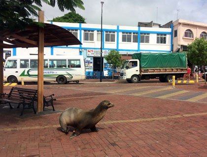 This morning we anchored in Academy Bay on Santa Cruz Island. Our activities began with a walk through the “Fausto Llerena” Breeding Center for Galapagos giant tortoises. Here we learned about the restoration project that is run by the Galapagos National Park for the different populations of the Galapagos giant tortoises; the whole center is currently being redesigned. One of the new groups of tortoises we see here are those found on Wolf Volcano, which have dna from the population on Pinta Island, where the famous Lonesome George came from. These hybrid tortoises will be bred in captivity, and their descendants will one day released on Pinta Island. After observing the tortoises in the center, we headed to Puerto Ayora where we spent some time enjoying the town and its little shops.